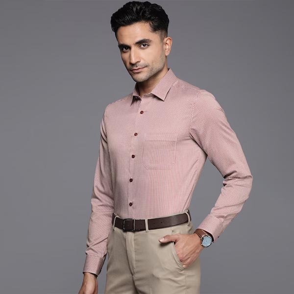 Formal & Casual shirtRust red and White checked Formal shirt, has a cutaway collar, button placket, 1 patch pocket, long regular sleeves, curved hem